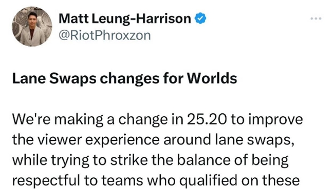 北京时间10月5日,距离S15世界赛是越来越近了,最近关于世界赛的场外消息是非常多的,今年世界赛比赛版本25.20,英雄数值调整已经确定了,但版本更新,得等到10号左右,拳头这段时间,也是在想各种办法,尽可能提升观众的观赛体验,设计师近日就带来了一个好消息:25.20版本,将增加上路换线的惩罚时间!