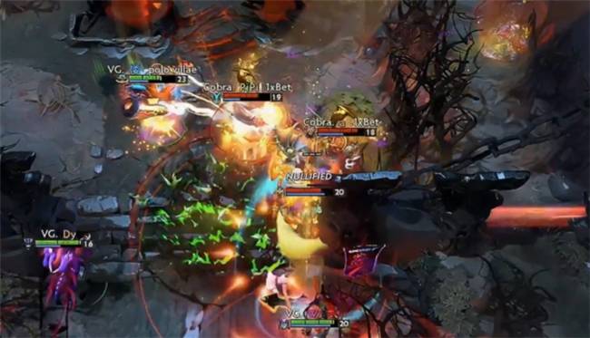 比赛22分钟VG准备打盾,而Cobra开雾来抓,小Y和夜魔先手人马却全部被TB打爆,两人瞬间被A死,Cobra败退,VG则顺利拿到不朽盾,TB带盾强势推高,轻松推掉中下两路。Cobra不敢硬接只得等TB盾消后开雾出击,没想到凤凰早已在TB屁股后面蹲好,拍拍眼见秒不掉TB于是转头去打凤凰,没想到却被自家先知框住动弹不得原地暴毙。Cobra再次团灭,眼见已没有胜算便打出GG!